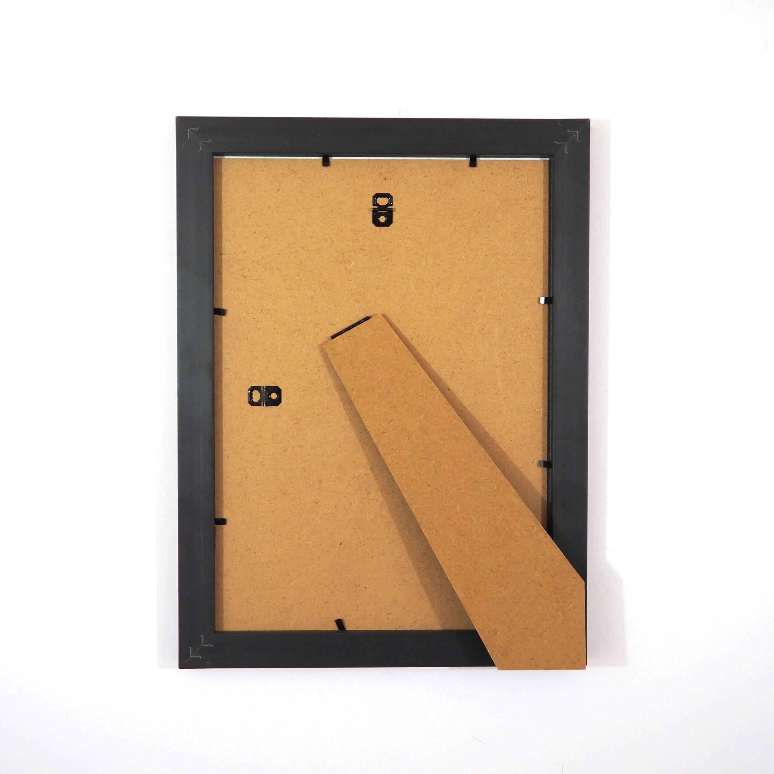 Attractive and stylish 28mm wide moulding in a brushed black finish. Fitted with 2mm 1mm perspex and an MDF back. Quality frames made in the UK. Frames are supplied with strut backs up to and including 12″ x 10″ to hang or stand either way. Frames above 12″ x 10″ can hang either way.