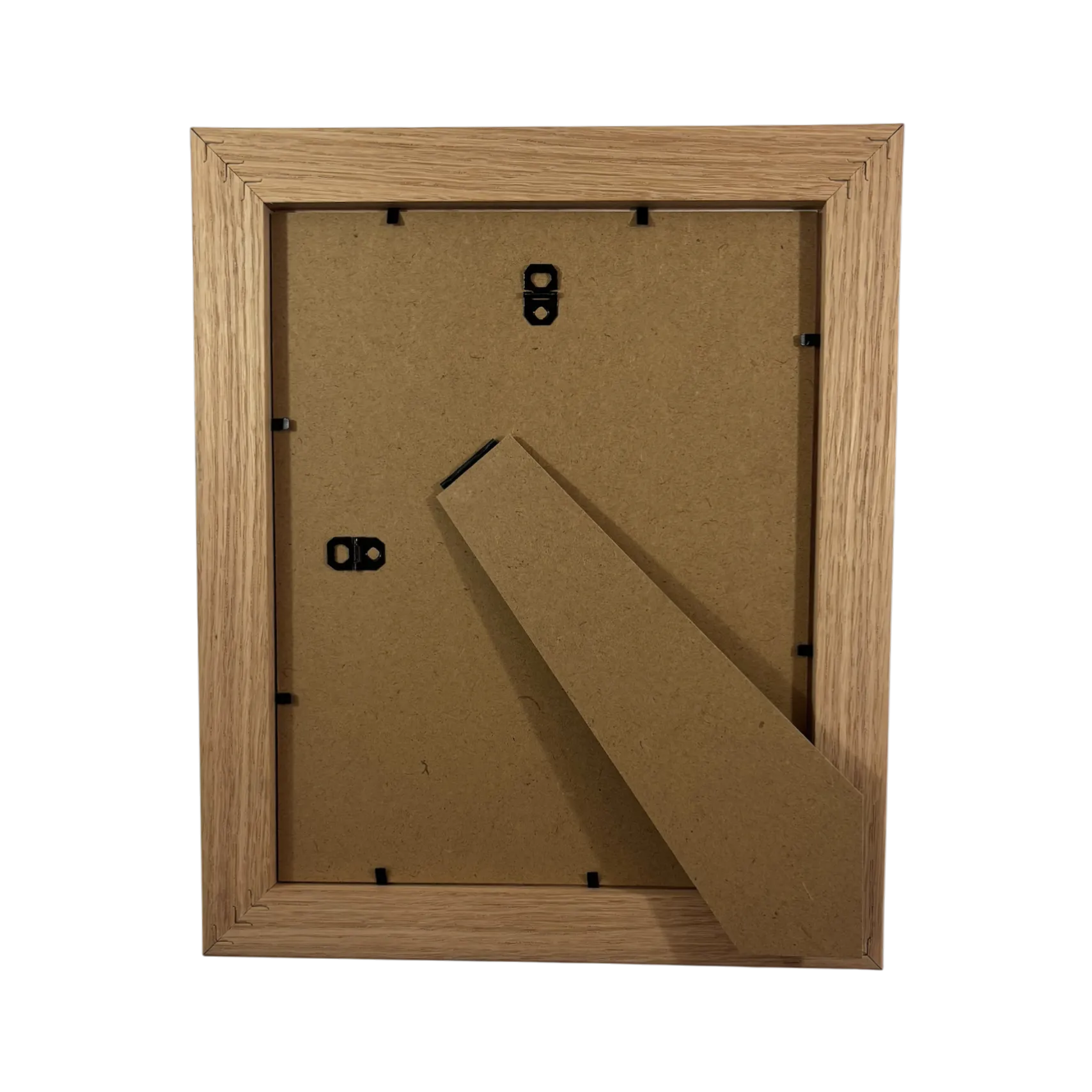 Natural American Red Oak. 33mm wide, 20mm deep. Fitted with 2mm glass or 1mm perspex and an MDF back. Quality frames made in the UK. Frames are supplied with strut backs up to and including 12″ x 10″ to hang or stand either way. Frames above 12″ x 10″ can hang either way.
